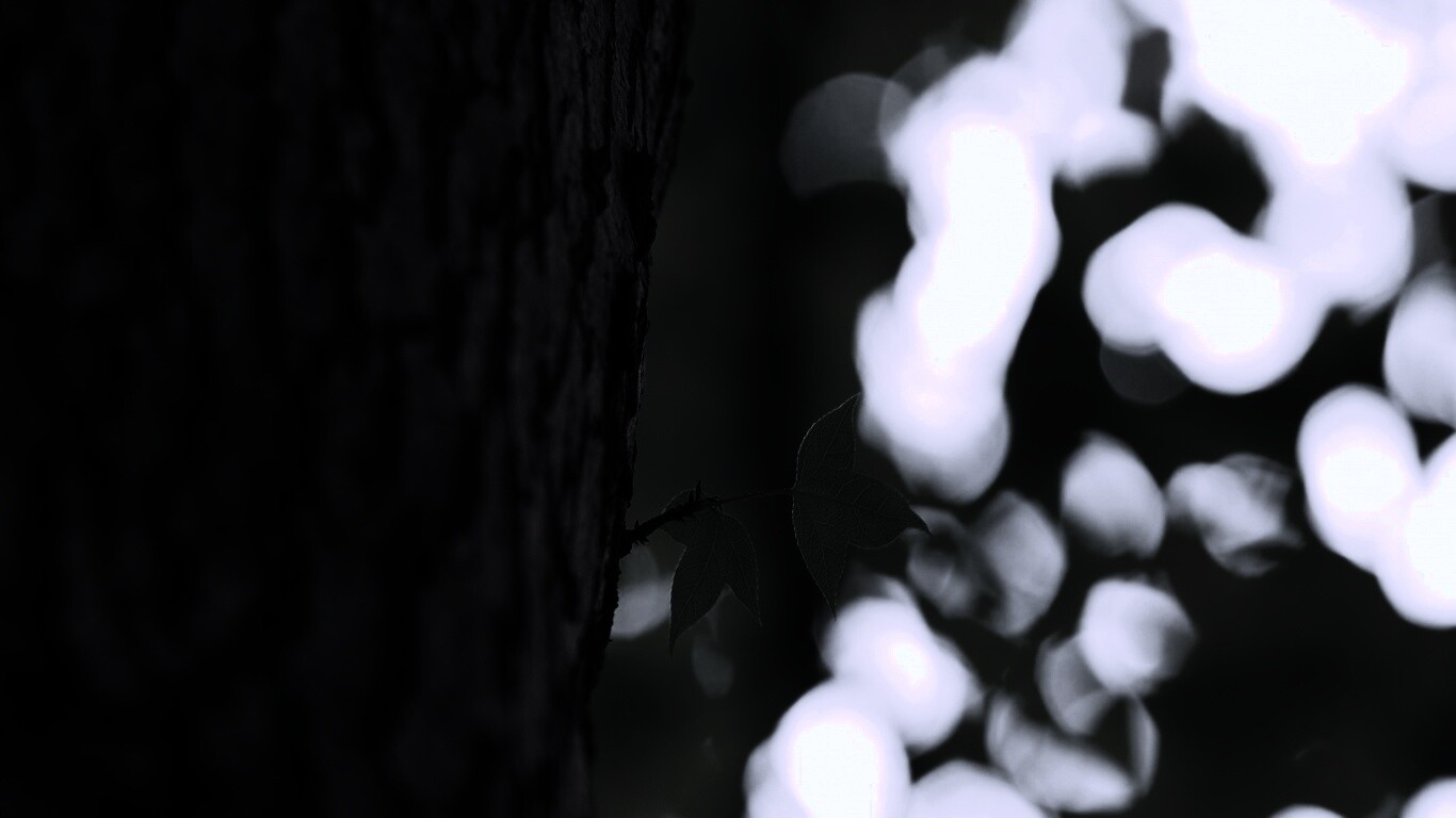 Обои для рабочего стола «Листок на стволе дерева» 1366х768 с фильтром gotham (оригинал 2560х1600)