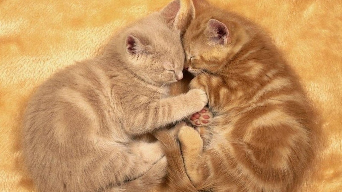 Обои для рабочего стола «Рыжие котята в обнимку» 1366х768 (оригинал 1920х1200)