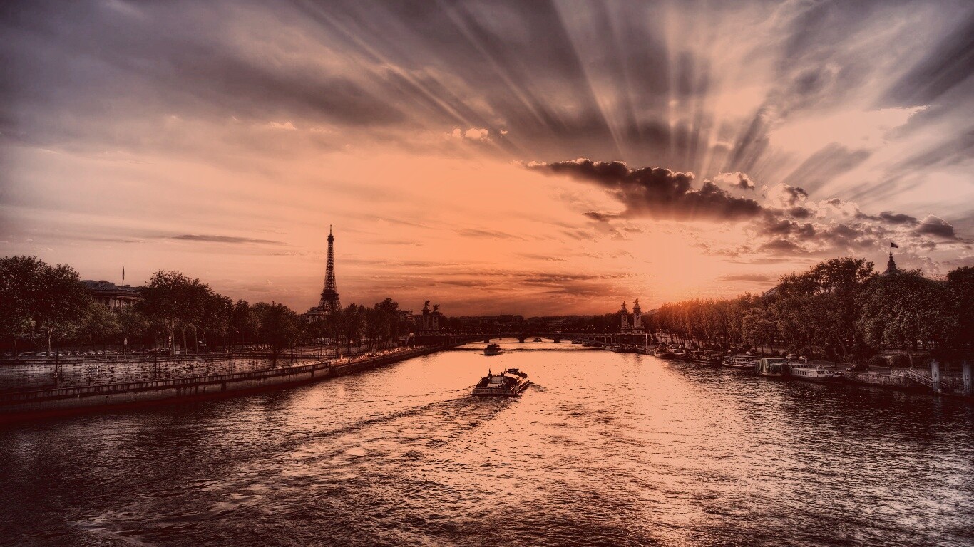 Обои для рабочего стола «Закат над парижем HDR» 1366х768 с фильтром toaster (оригинал 2560х1600)