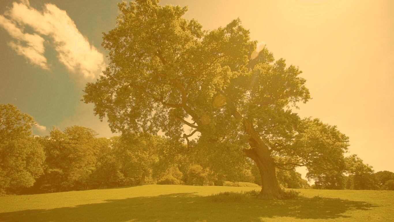 «Большое зеленое дерево на лужайке»
