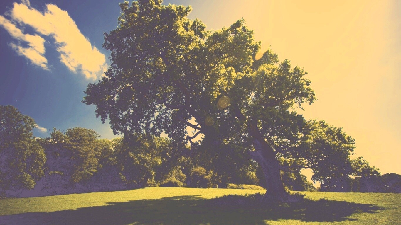 «Большое зеленое дерево на лужайке»