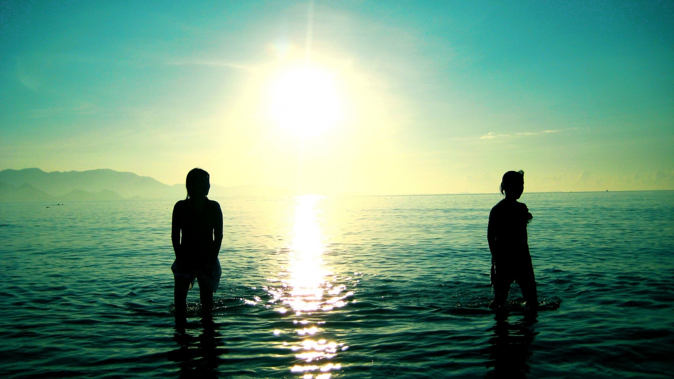 Обои для рабочего стола «Море, солнце, девушки» 1366х768 (оригинал 2554х1600)