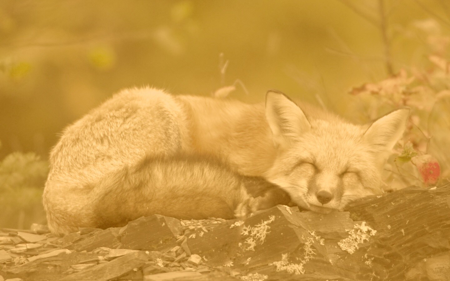 Обои для рабочего стола «Спящая лиса» 1440х900 с фильтром kelvin (оригинал 1920х1200)