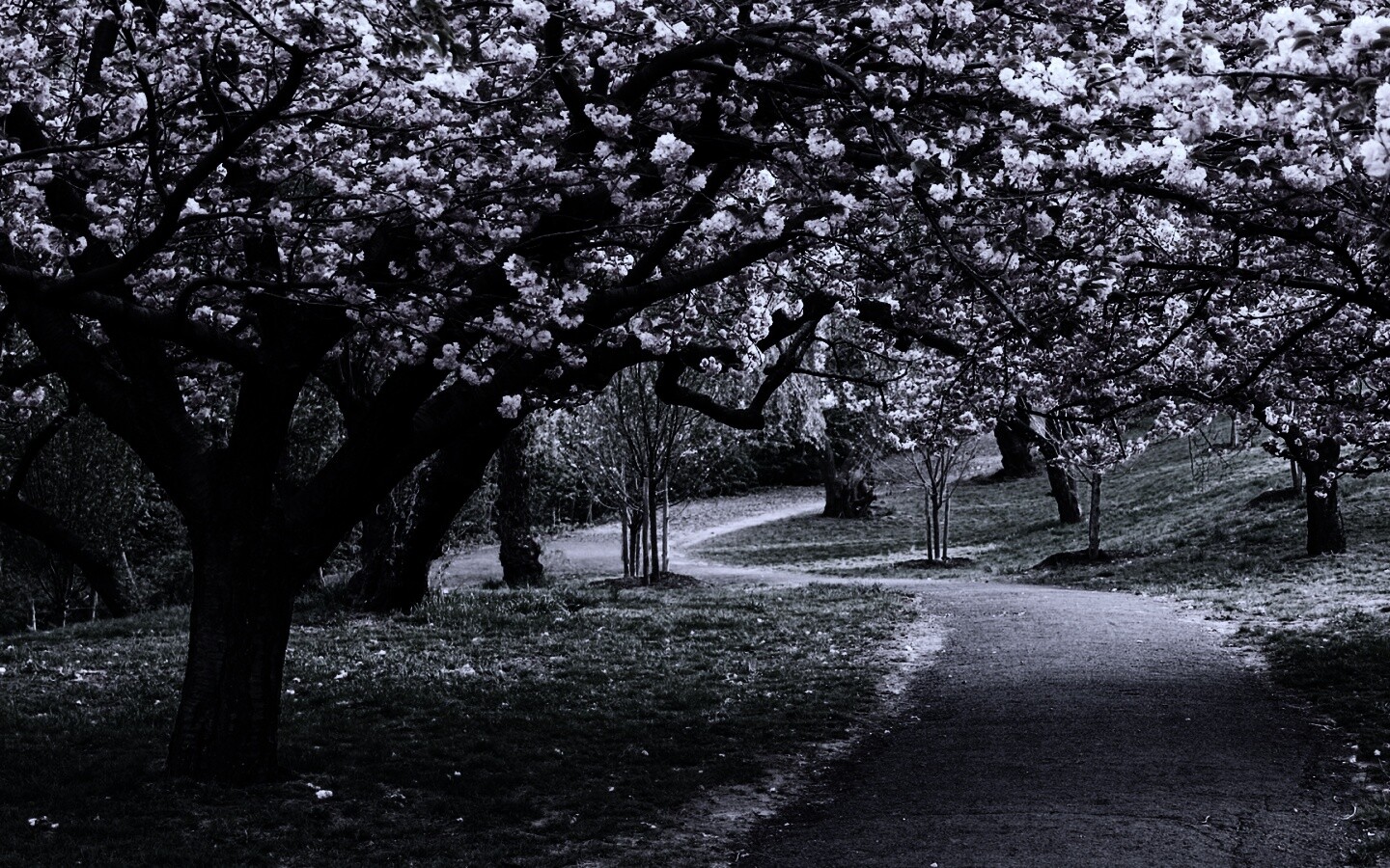 Обои для рабочего стола «Дорожка между деревьями» 1440х900 с фильтром gotham (оригинал 1920х1080)