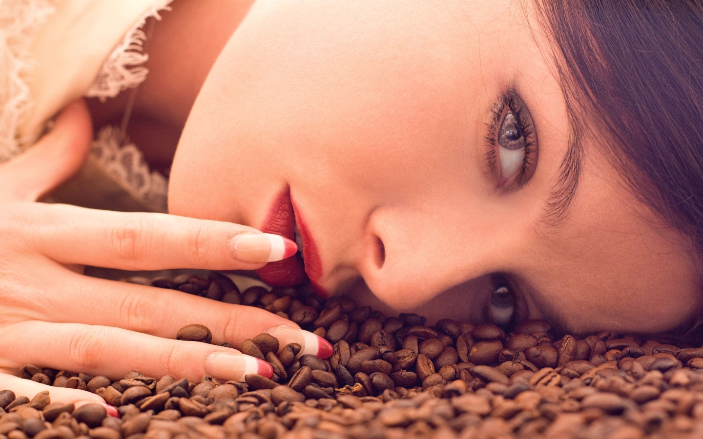 «Соблазнительная девушка с кофейными зернами»