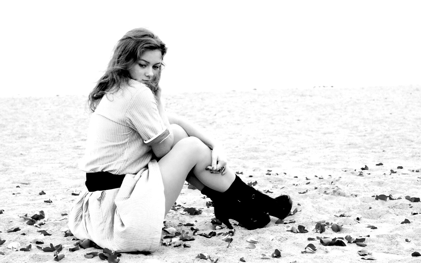 «Девушка среди лепестков на пляже»