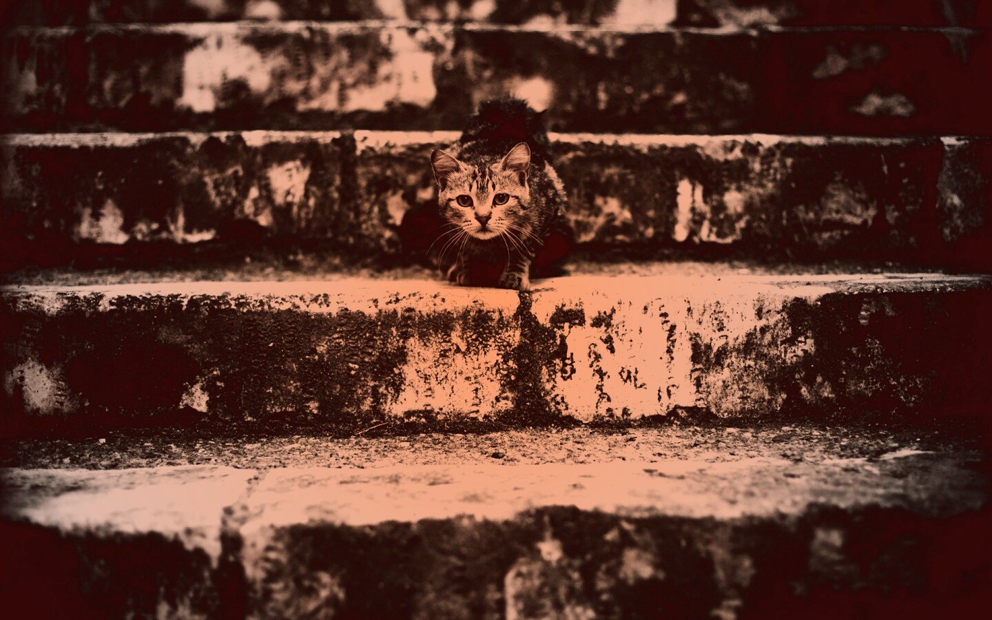 «Растрепанная кошка на ступеньках лестницы»