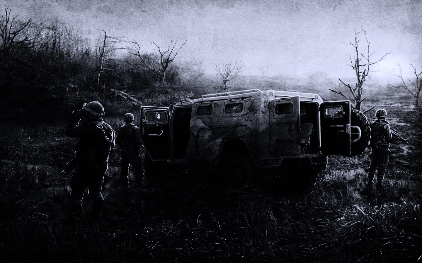 «Солдаты из сталкера на болоте»