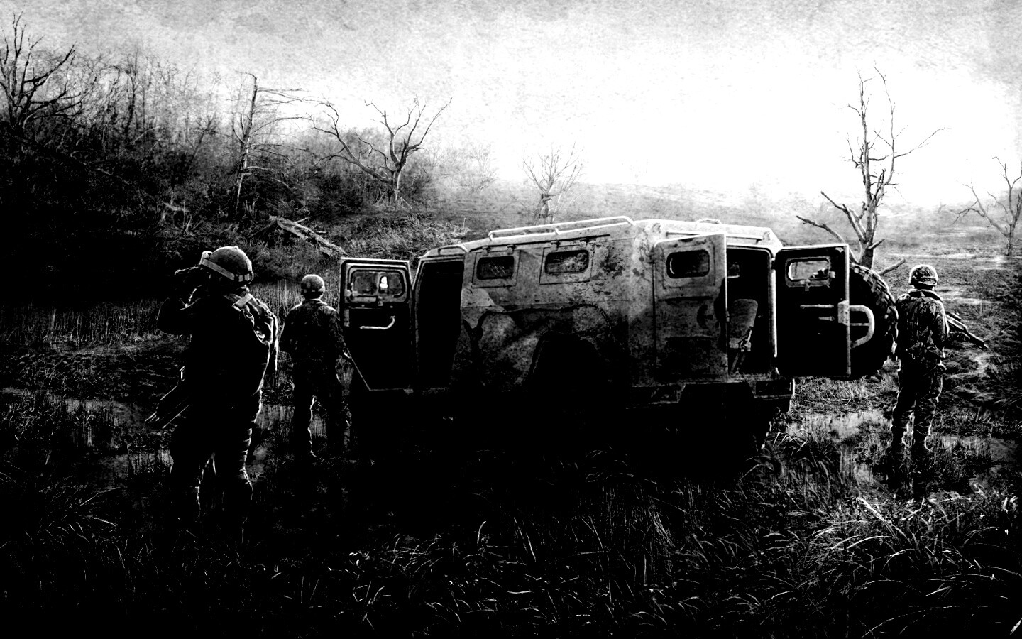 «Солдаты из сталкера на болоте»