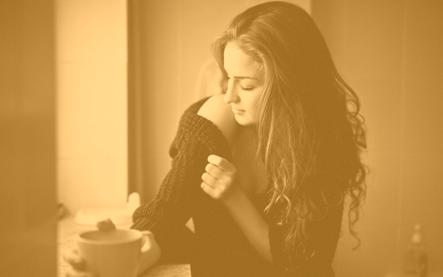 «Обнаженное плечо и чашка кофе»