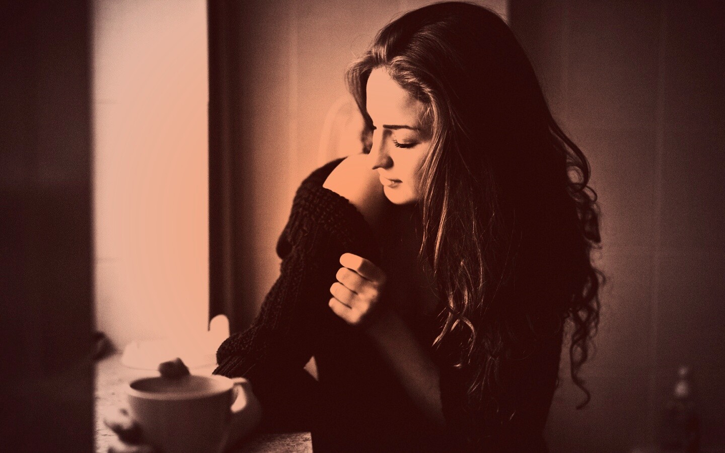 «Обнаженное плечо и чашка кофе»