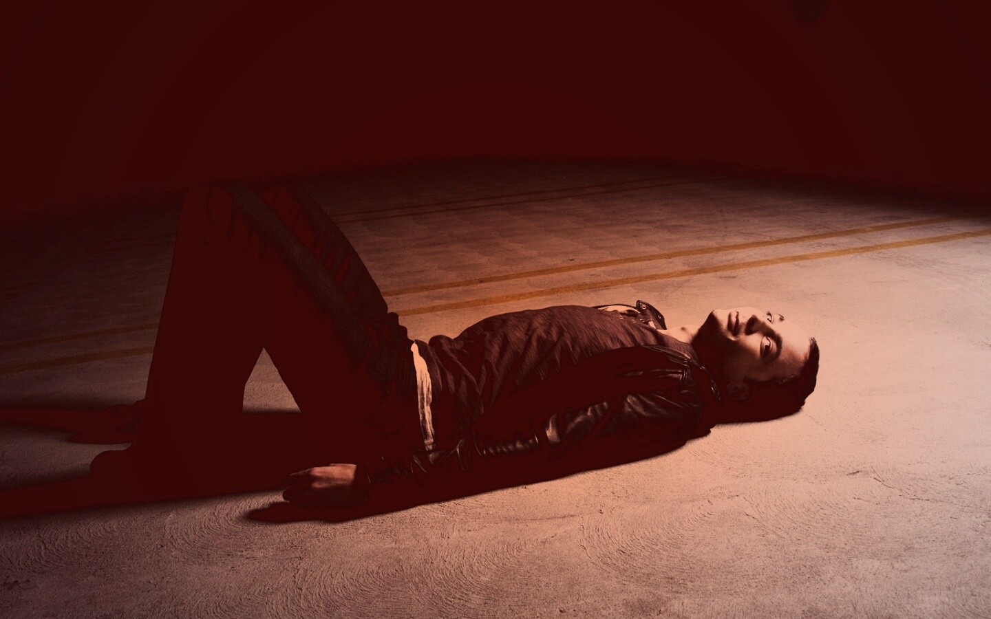 Обои для рабочего стола «Джим Парсонс на полу» 1440х900 с фильтром toaster (оригинал 1440х900)