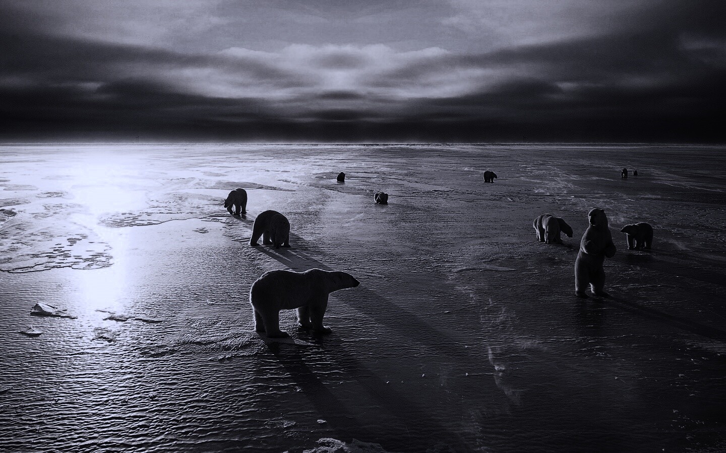 Обои для рабочего стола «Полярные медведи» 1440х900 с фильтром gotham (оригинал 1920х1200)