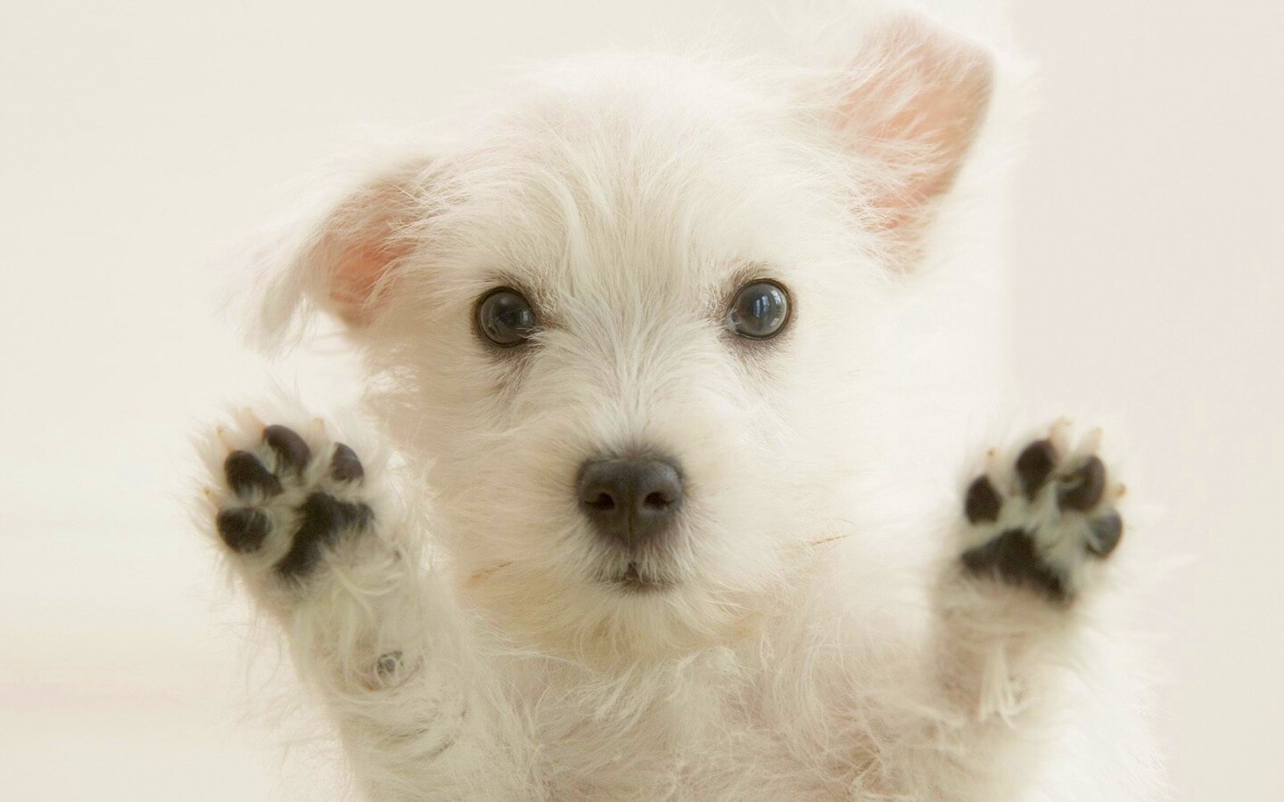 «Белый любознательный щенок»