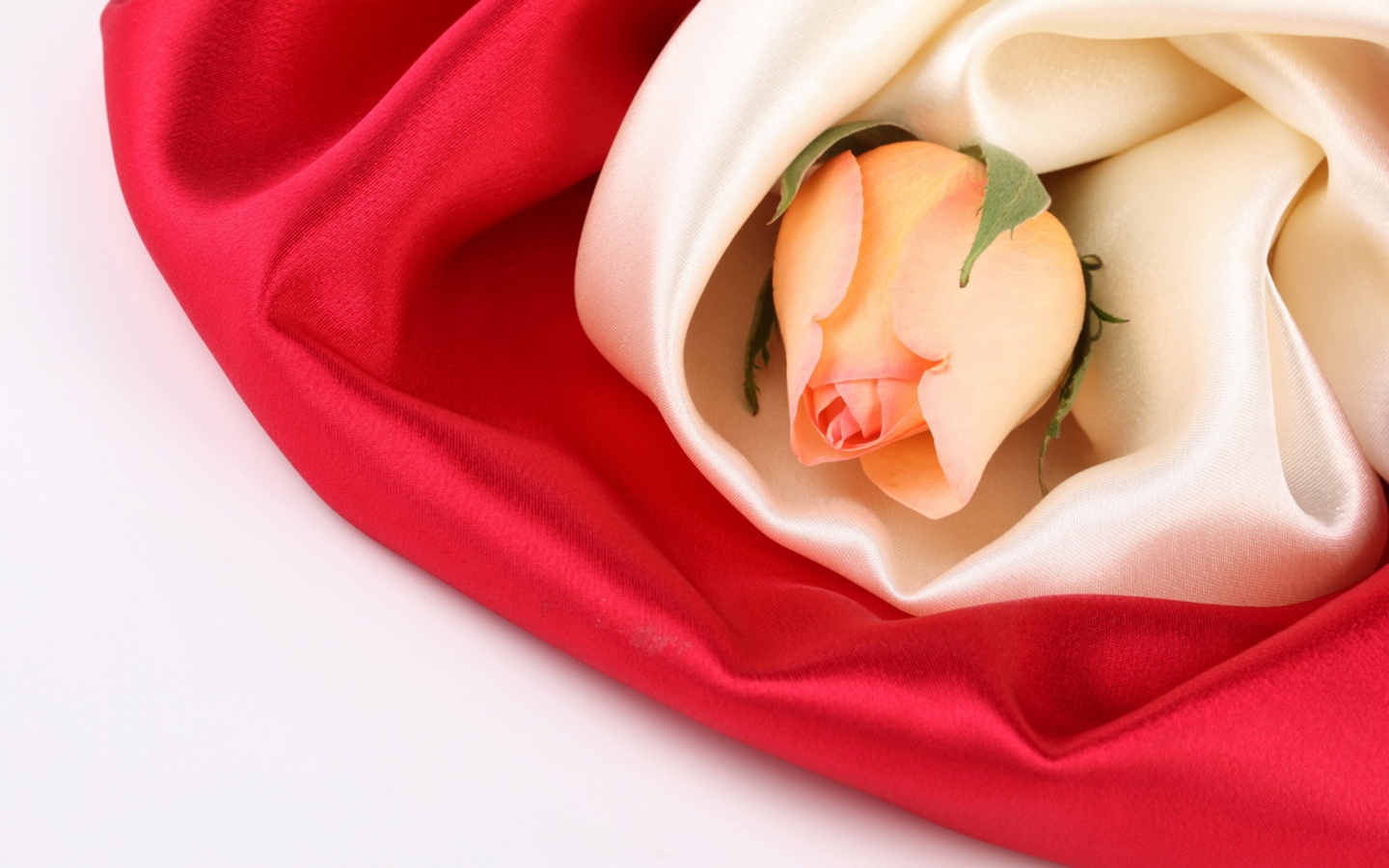 Обои для рабочего стола «Нераспустившийся цветок розы в шелке» 1440х900 (оригинал 2560х1600)