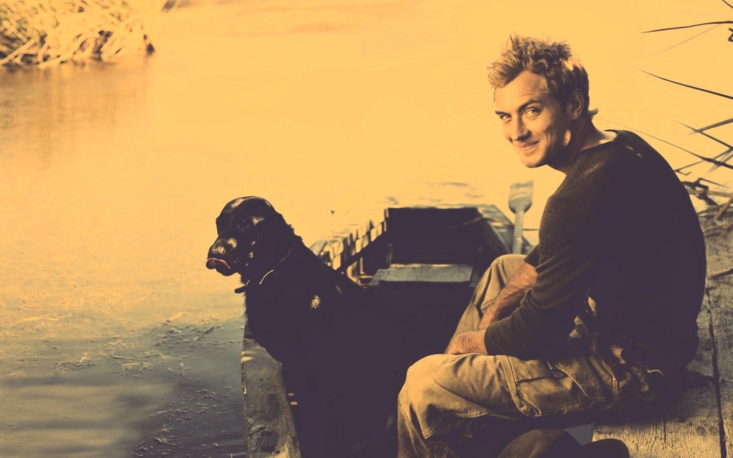 Обои для рабочего стола «Джуд Лоу на лодке» 1440х900 с фильтром nashville (оригинал 6186х4191)