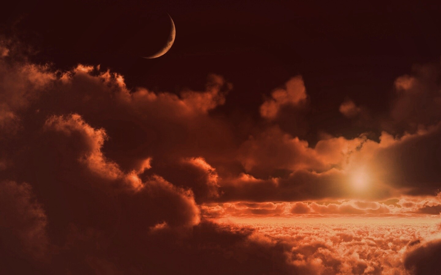 «Закат и месяц над облаками»