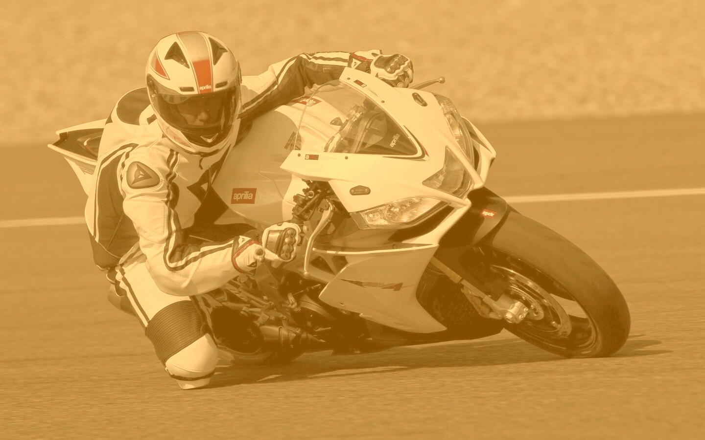 «Байкер в белой экиперовкена Априлия РСВ4»