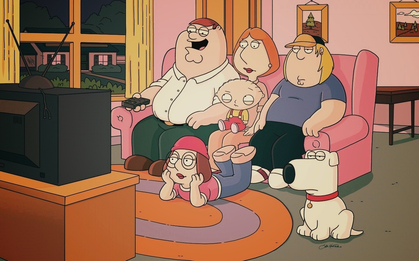 «Гриффины всей семьей перед телевизором»