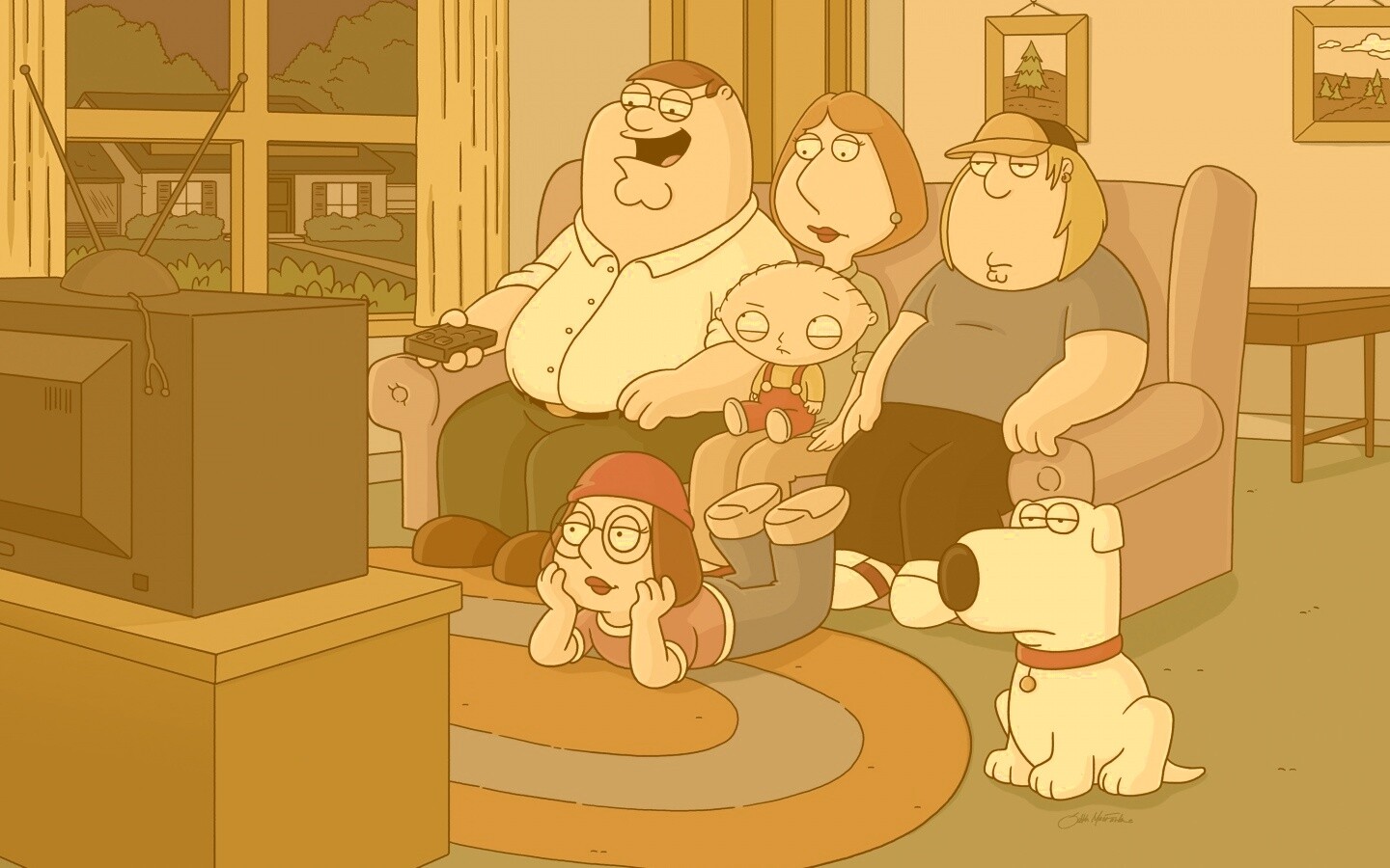 «Гриффины всей семьей перед телевизором»