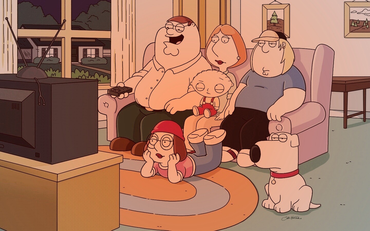 «Гриффины всей семьей перед телевизором»