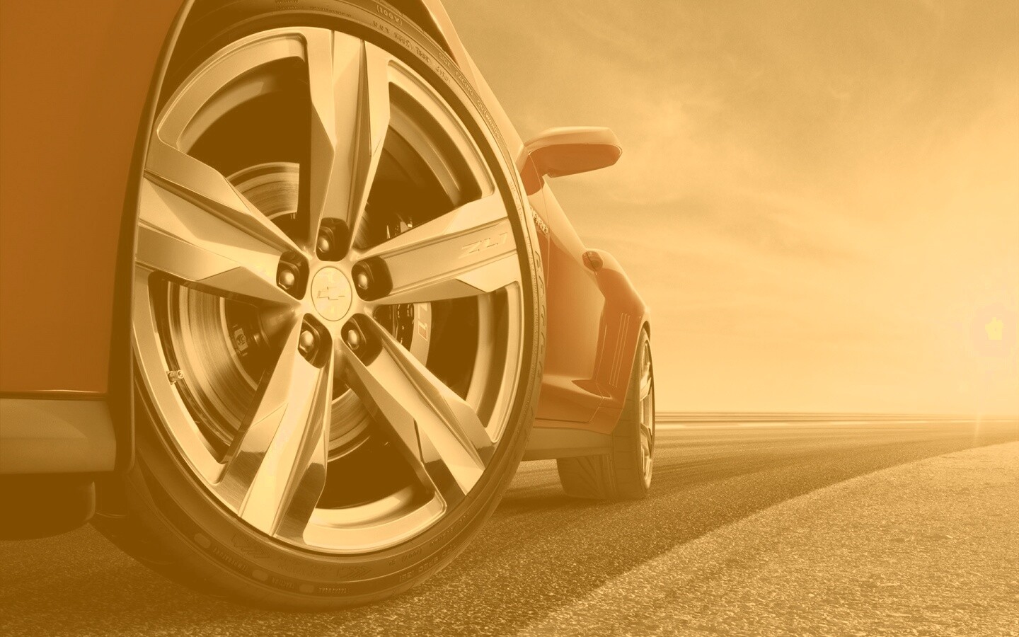 Обои для рабочего стола «Колесо Шевроле Камаро» 1440х900 с фильтром kelvin (оригинал 1920х1200)