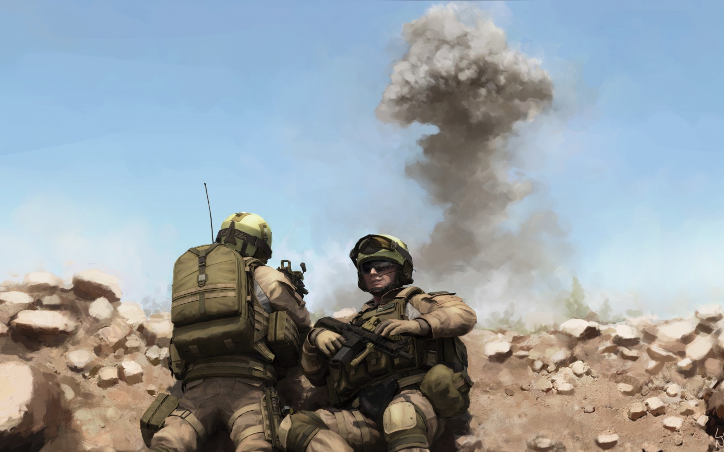 Обои для рабочего стола «Солдаты в пустыне» 1440х900 (оригинал 3500х2000)