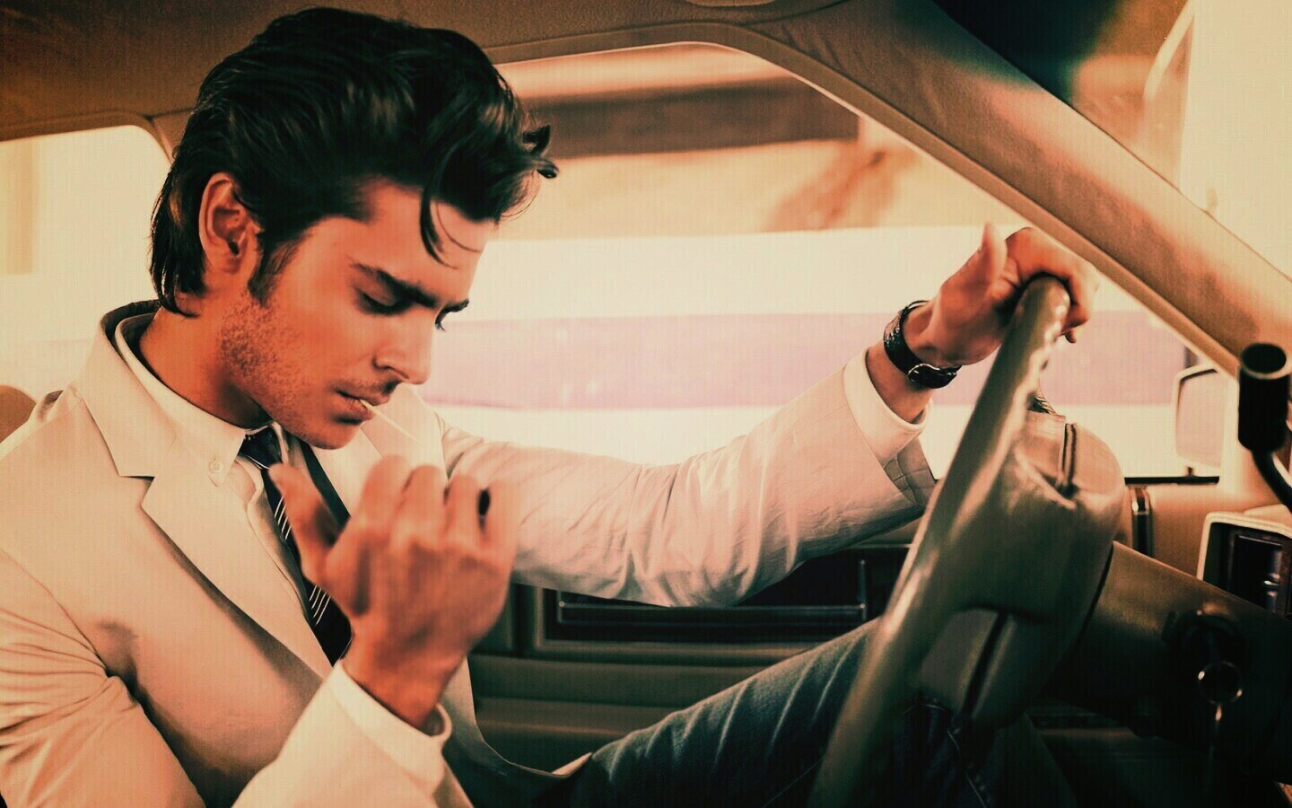 «Мужчина прикуривает в машине»