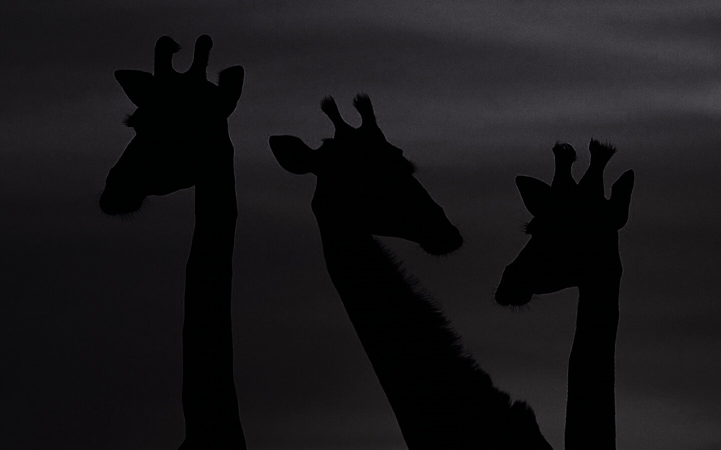 «Три силуэта жирафов на фоне неба»