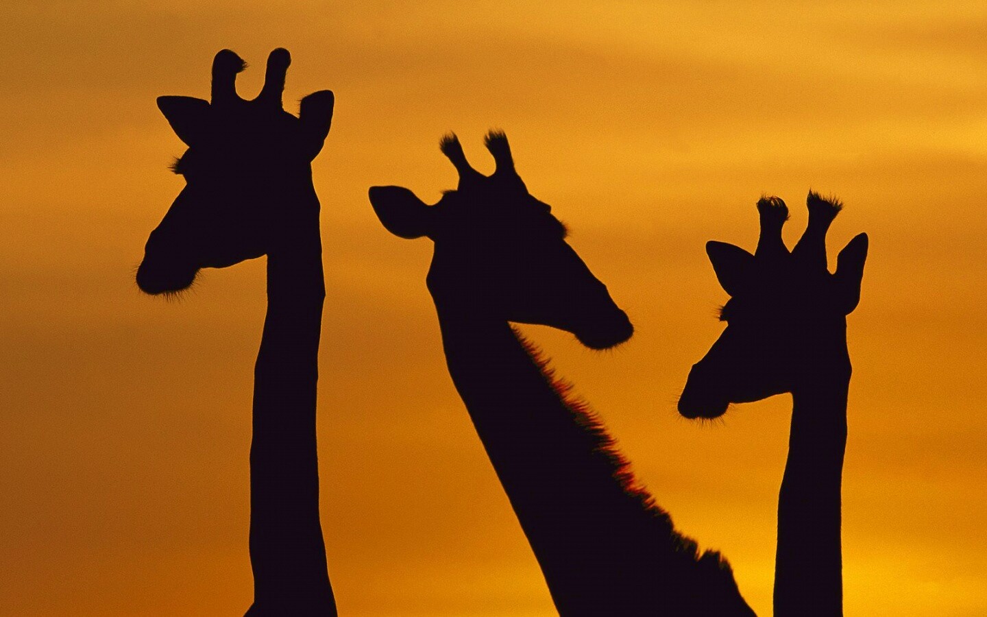 «Три силуэта жирафов на фоне неба»