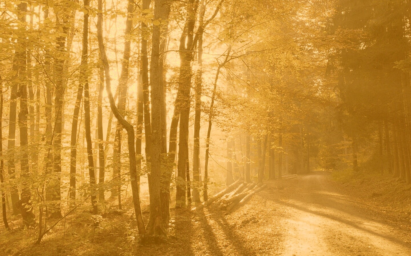 «Дорога вдоль просеки в осеннем лесу»