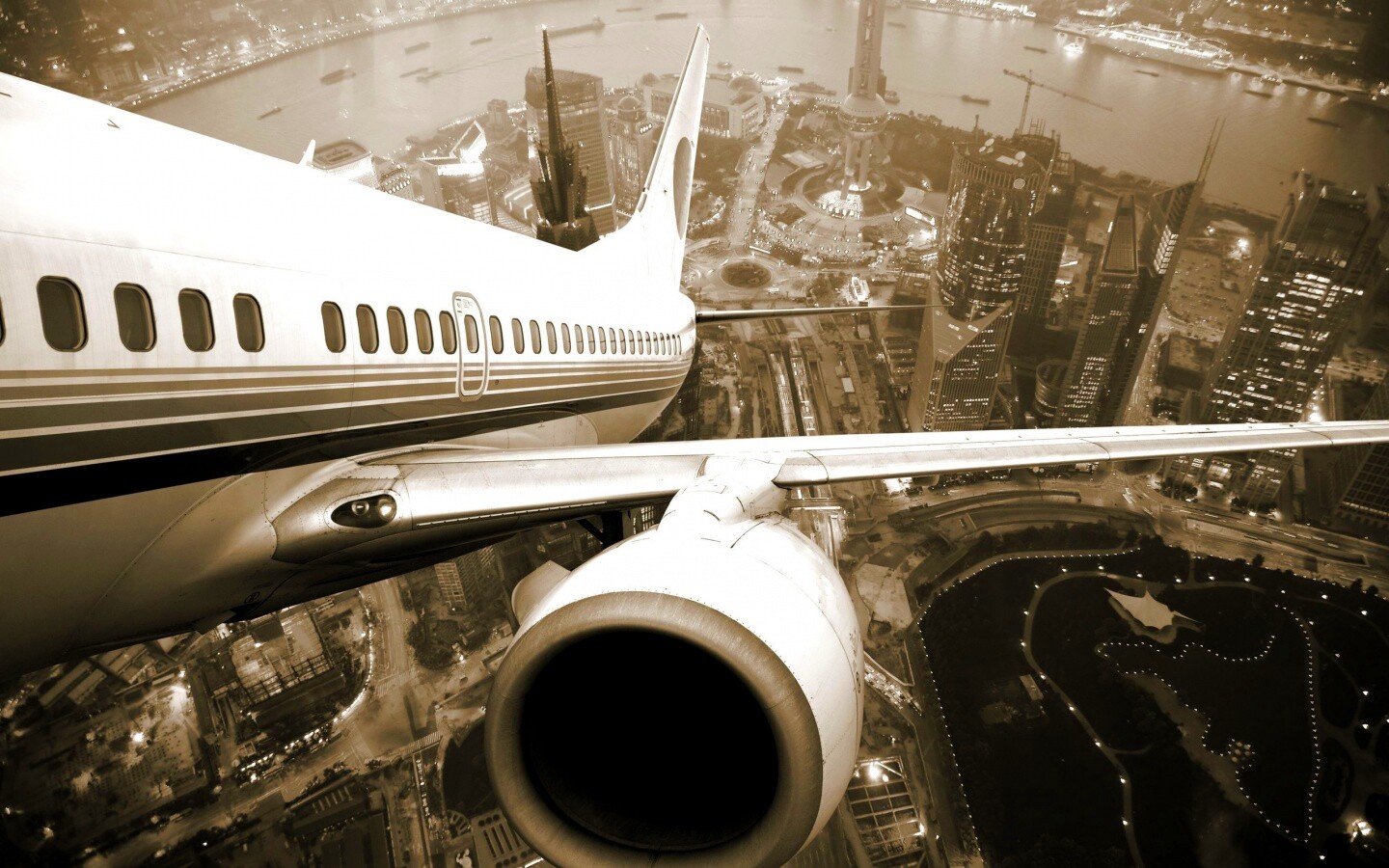 Обои для рабочего стола «Взлет над городом» 1440х900 с фильтром vibrance (оригинал 2560х1600)