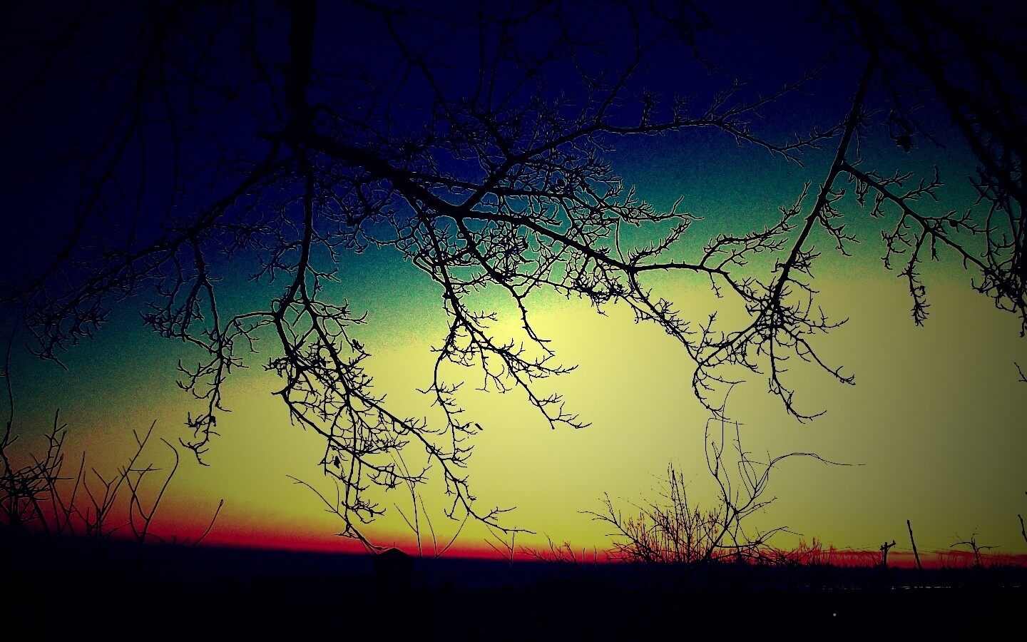«Закат сквозь ветки деревьев»
