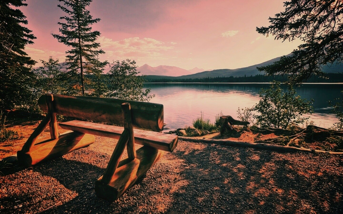 «Деревянная скамья на берегу озера»