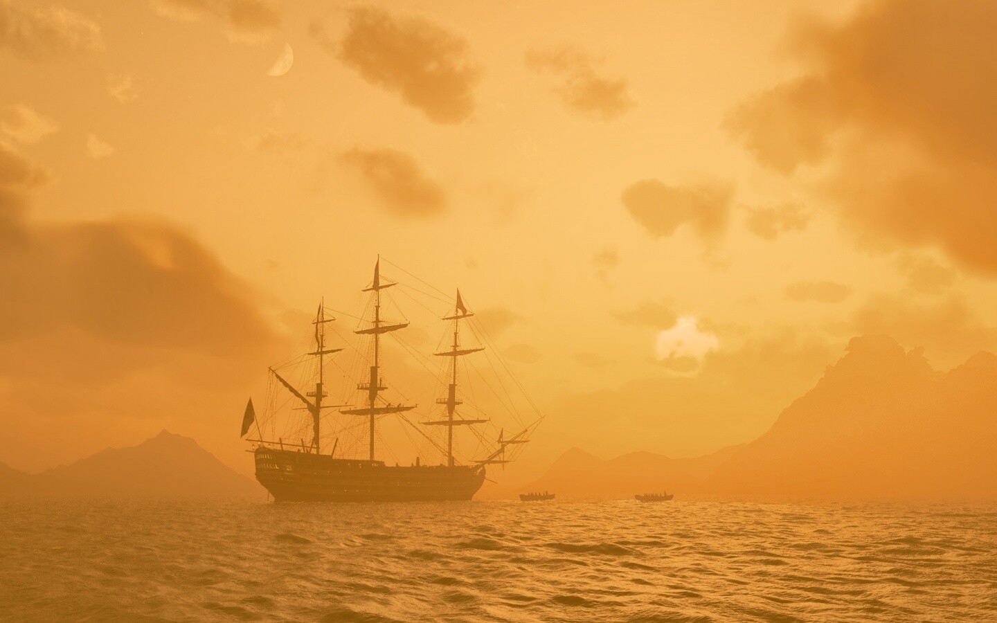 «Трехпалубный парусный корабль на закате»