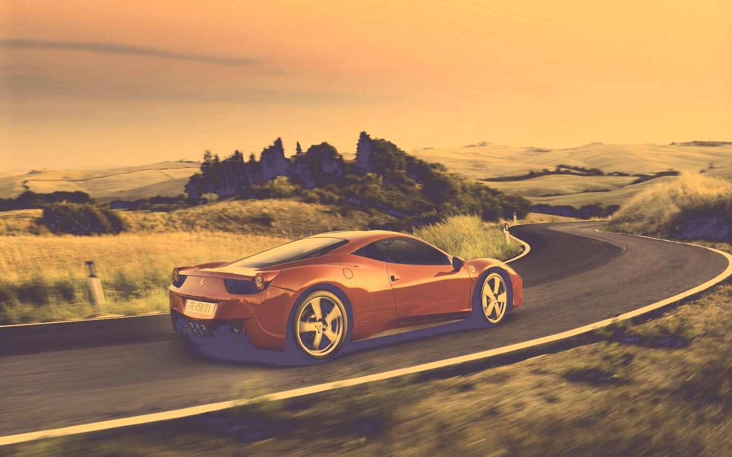 «Красная феррари на извилистой дороге»