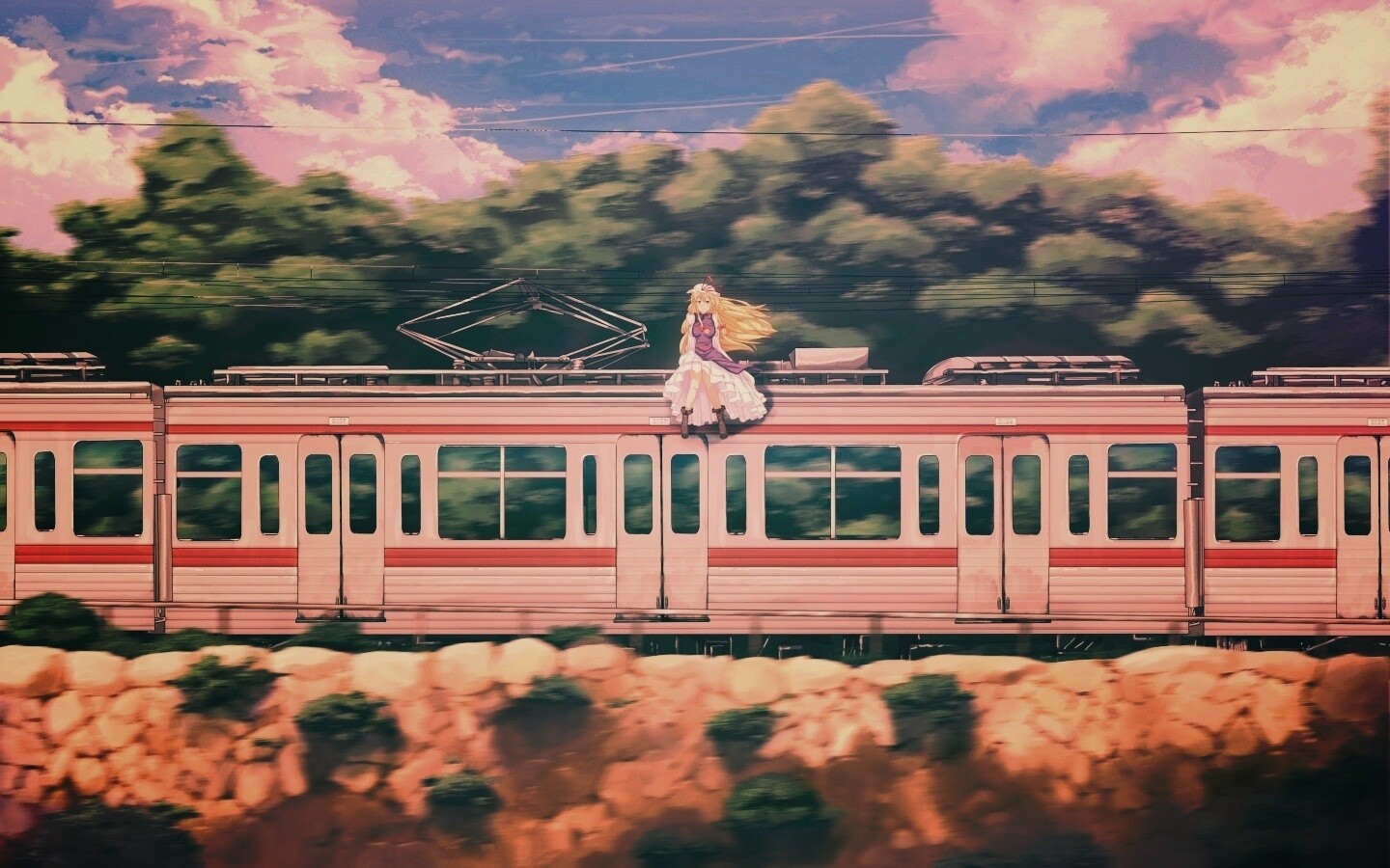 Обои для рабочего стола «Девушка на крыше поезда» 1440х900 с фильтром earlybird (оригинал 3812х2760)