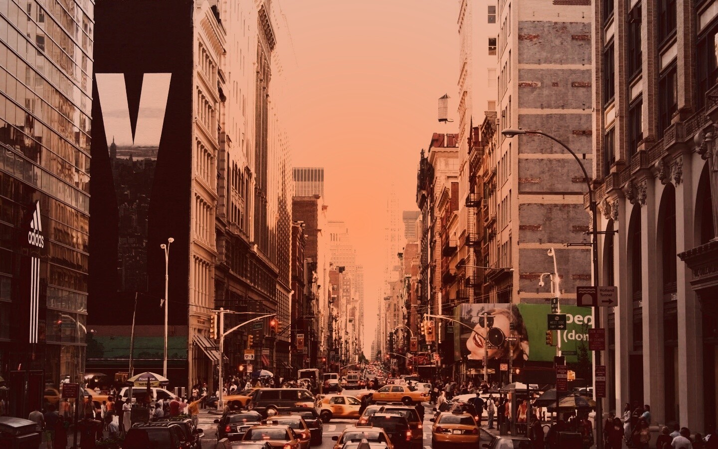 Обои для рабочего стола «Людная Нью-Йоркская улица» 1440х900 с фильтром toaster (оригинал 2560х1600)