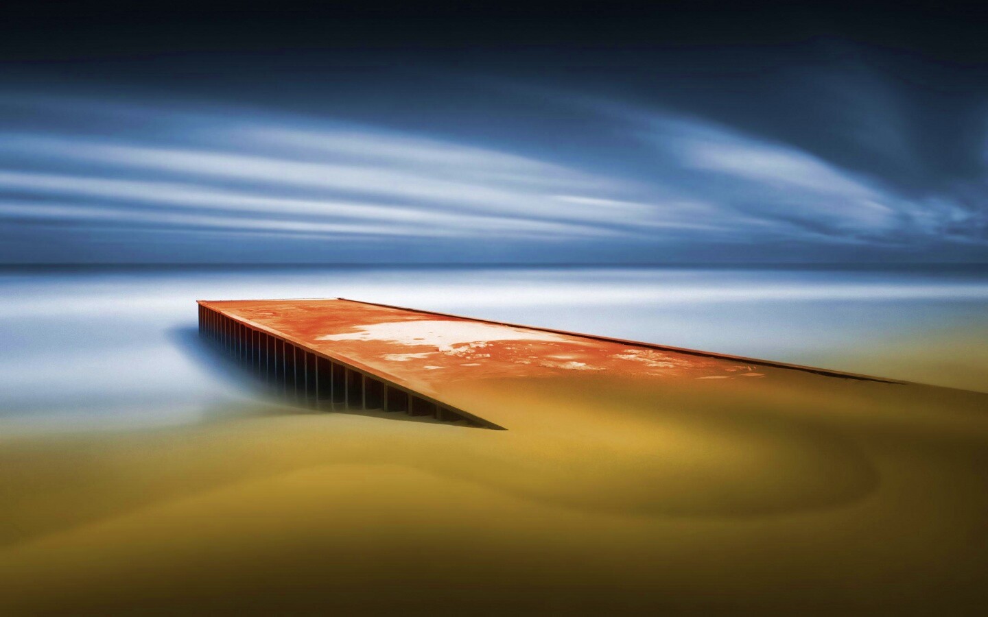Обои для рабочего стола «Пирс на пляже» 1440х900 с фильтром vibrance (оригинал 2560х1600)