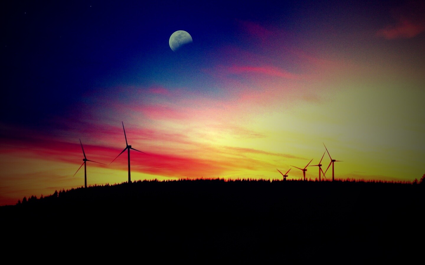 Обои для рабочего стола «Закат за холмом» 1440х900 с фильтром lomo (оригинал 2560х1600)