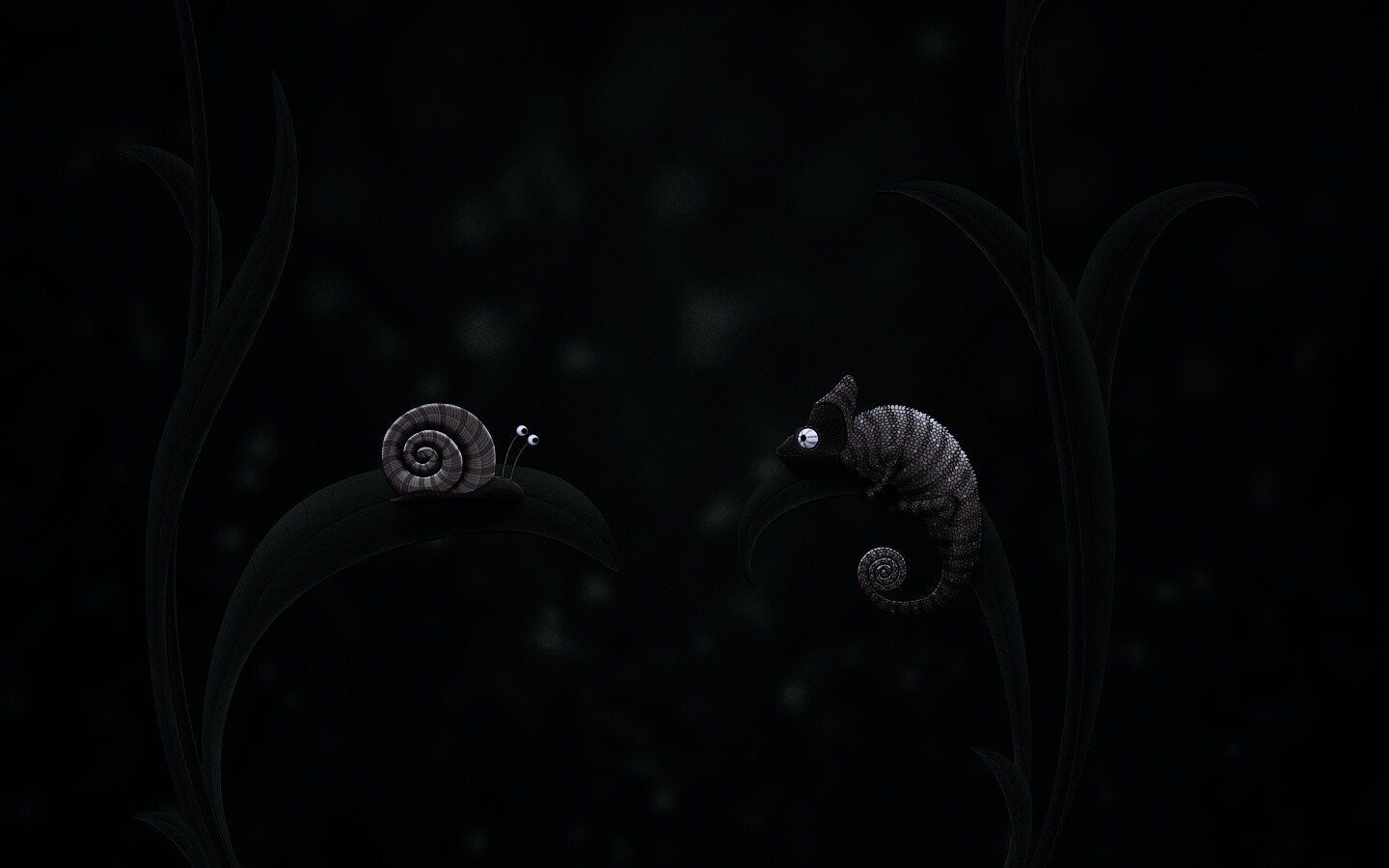 Обои для рабочего стола «Хамелеон замаскированный под улитку» 1440х900 с фильтром gotham (оригинал 2560х1600)