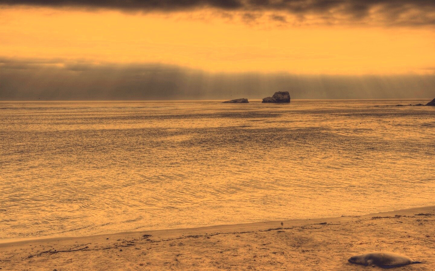 «Пляж на фоне светящегосы неба»