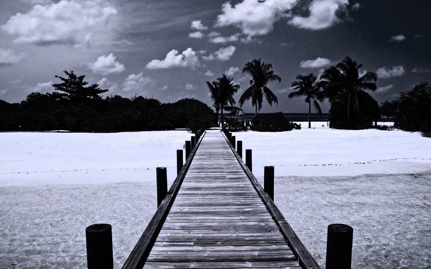 Обои для рабочего стола «Пирс на тропическом острове» 1440х900 с фильтром gotham (оригинал 3700х2458)