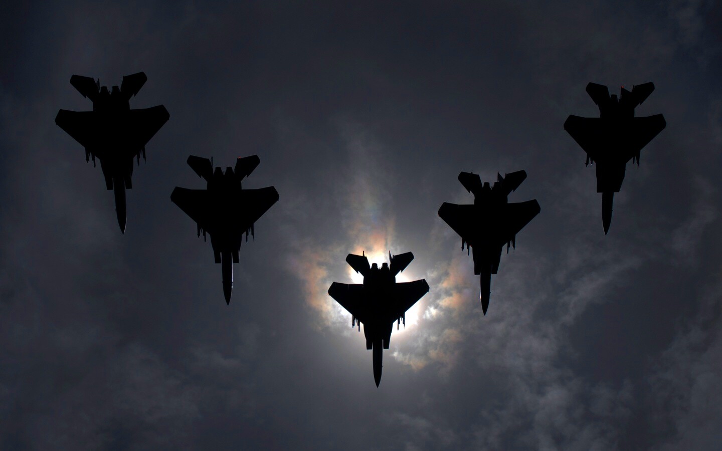 «Ряд истрибителей на фоне солнца»