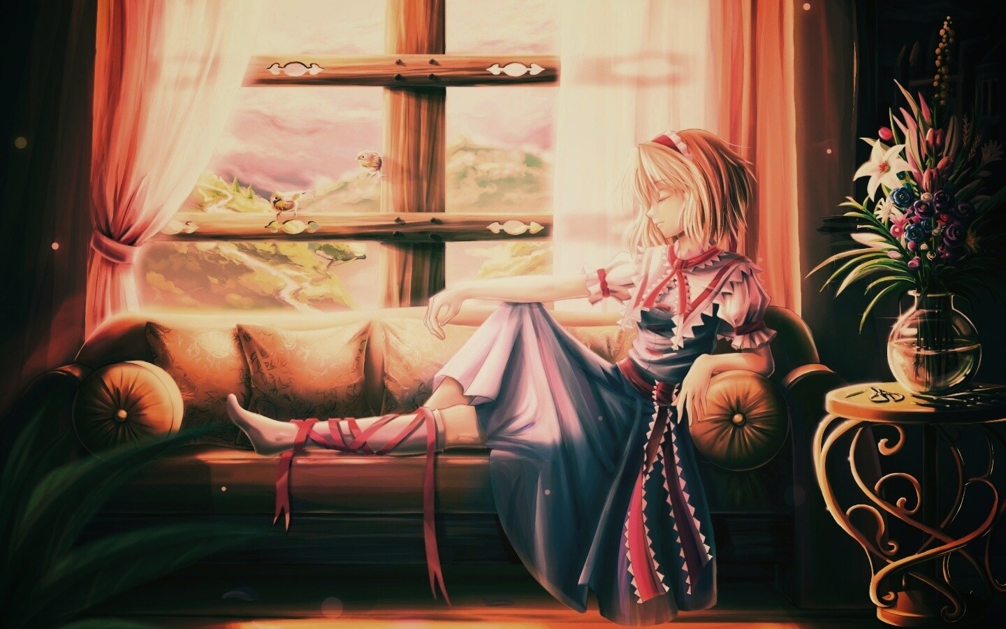Обои для рабочего стола «Девушка у окна» 1440х900 с фильтром earlybird (оригинал 2338х1700)