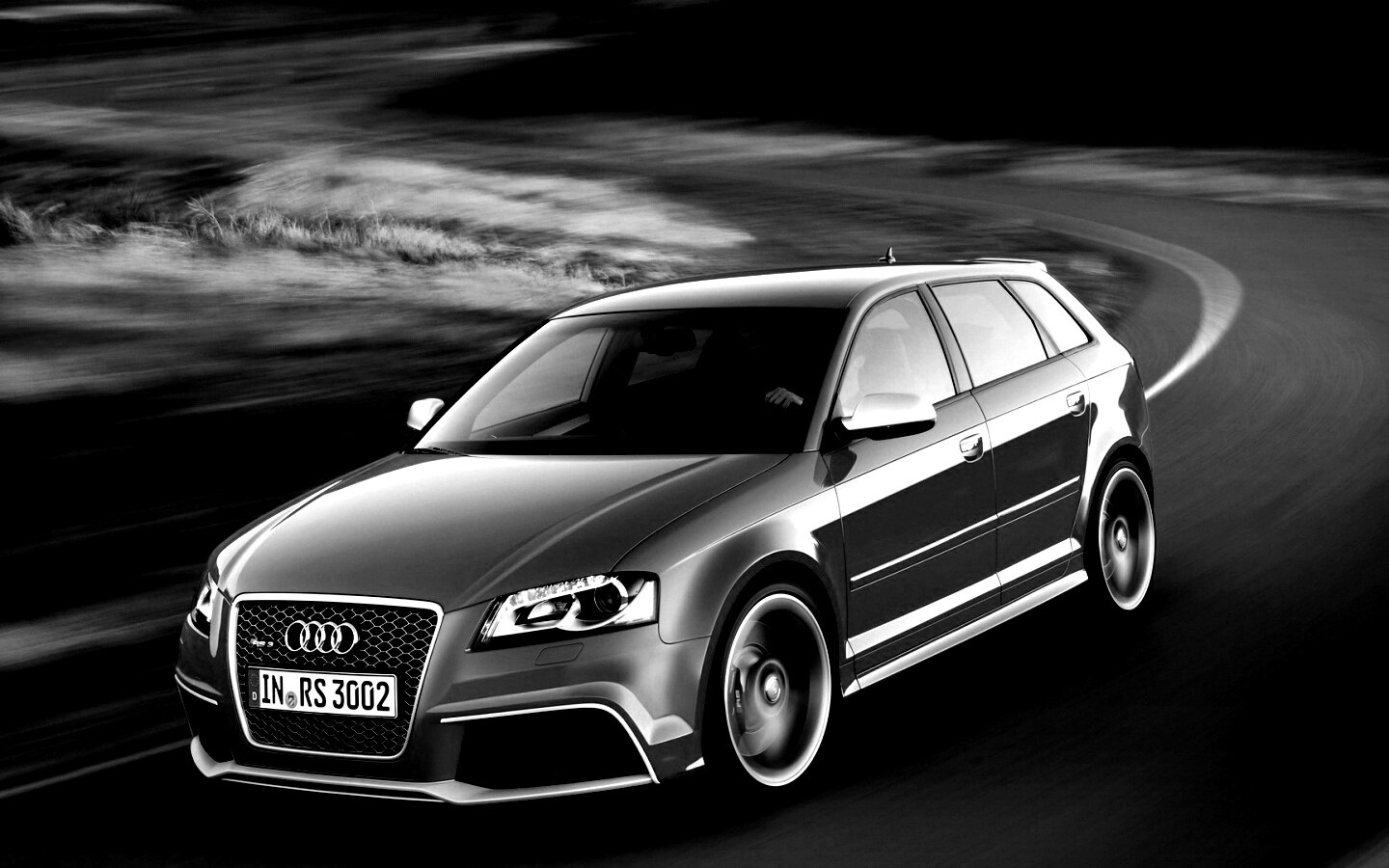«Красная ауди мчится по извилистой дороге»