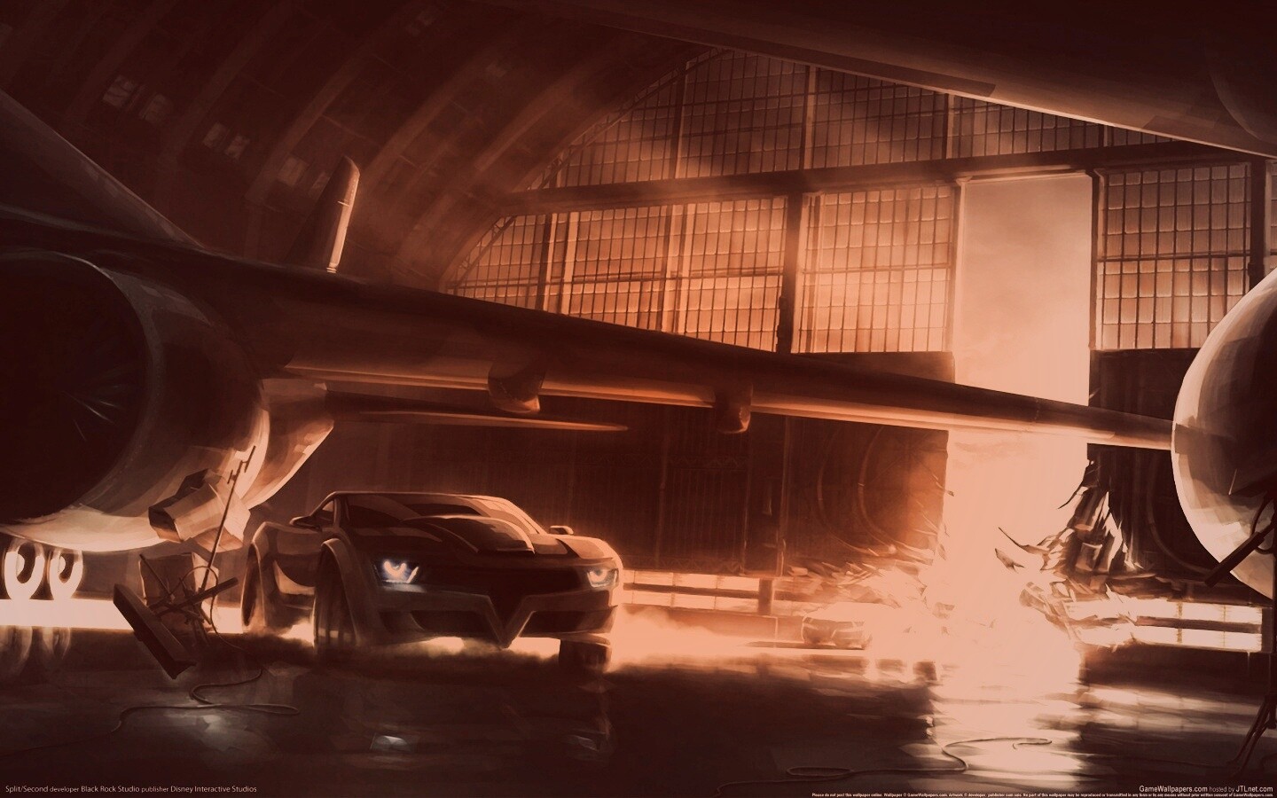 Обои для рабочего стола «Машины въезжают в ангар» 1440х900 с фильтром toaster (оригинал 2560х1600)