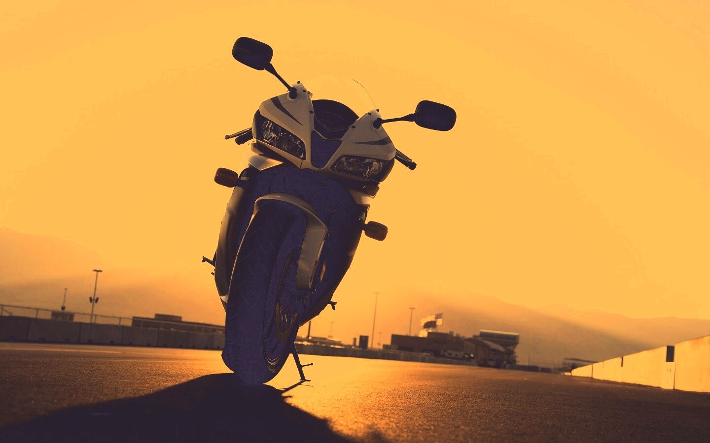 «Мотоцикл на фоне заходящего солнца»