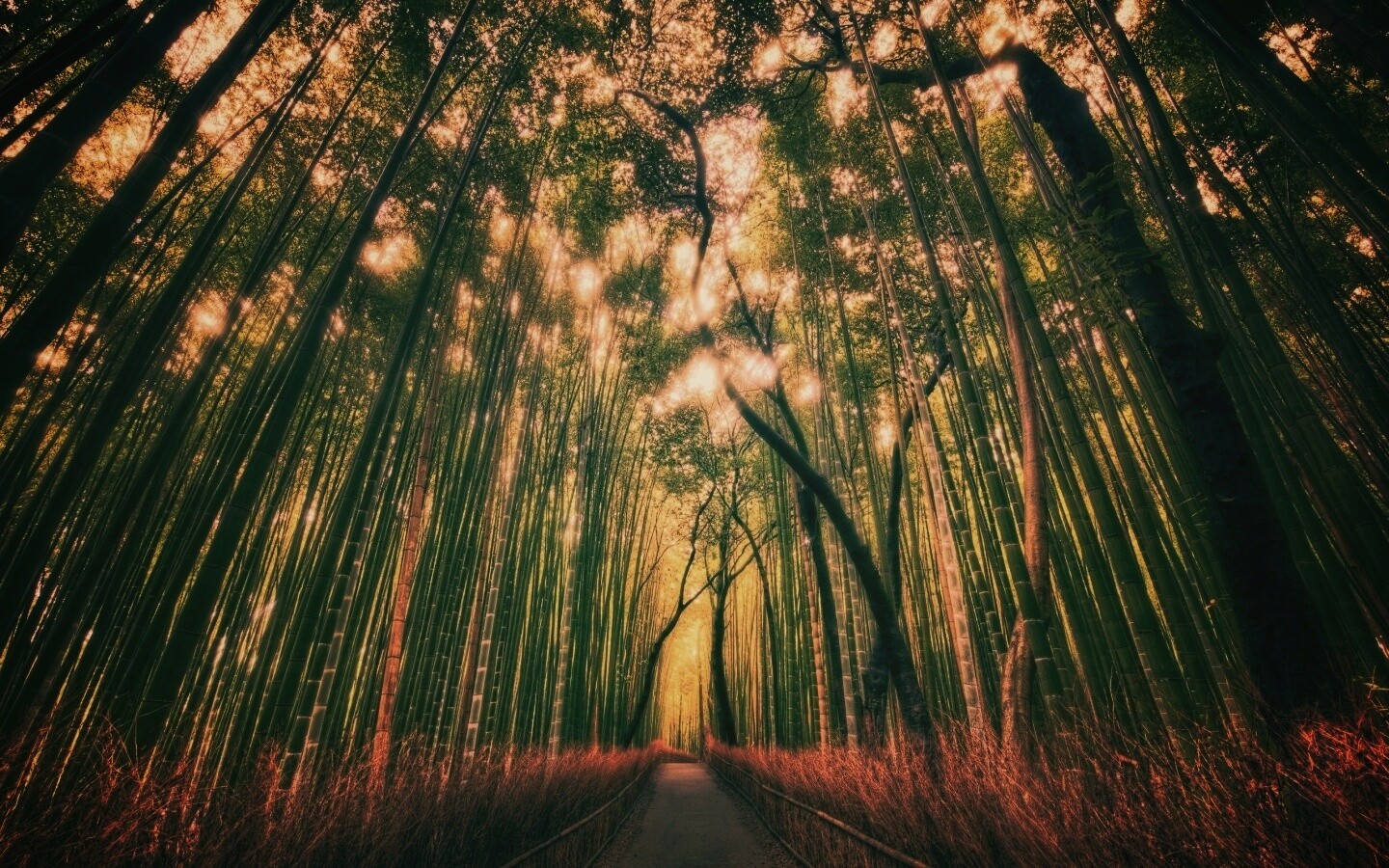 Обои для рабочего стола «Дорога в тростниковых зарослях» 1440х900 с фильтром earlybird (оригинал 2560х1600)