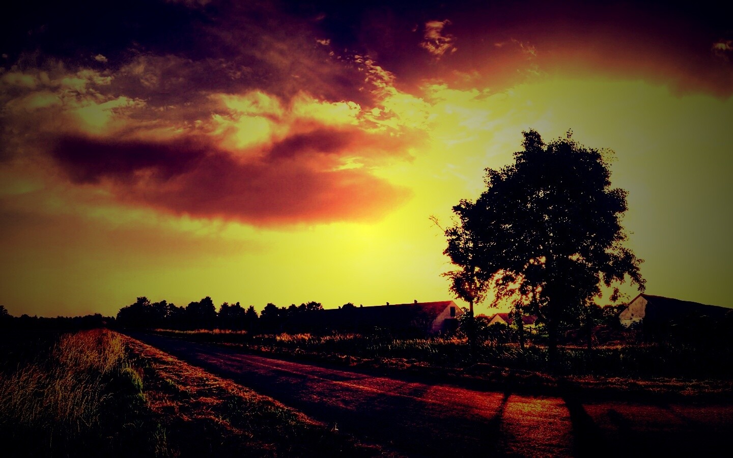 «Закат на фоне дерева в HDR»